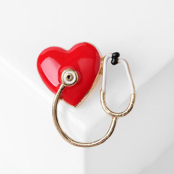 Брошь "Стетоскоп" с сердцем, цветная, цвет золотистый