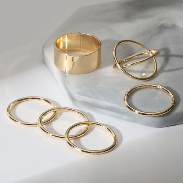Набор колец 5 штук "Тренд" линия, цвет золото