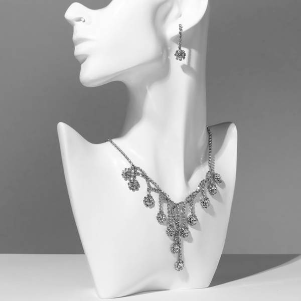 Комплект: серьги, колье "Элит" водопад, цвет белый, цвет серебристый, 30см