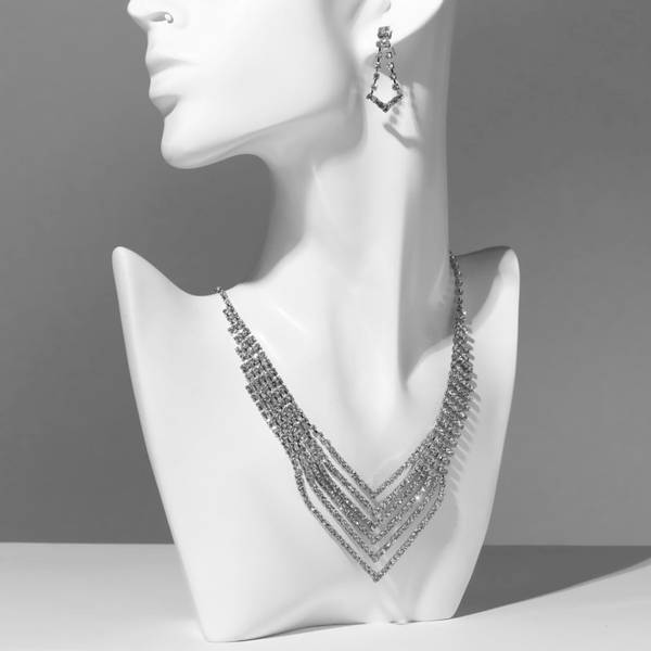 Комплект: серьги, колье "Лёд", 6 рядов, цвет белый, цвет серебристый, 30см