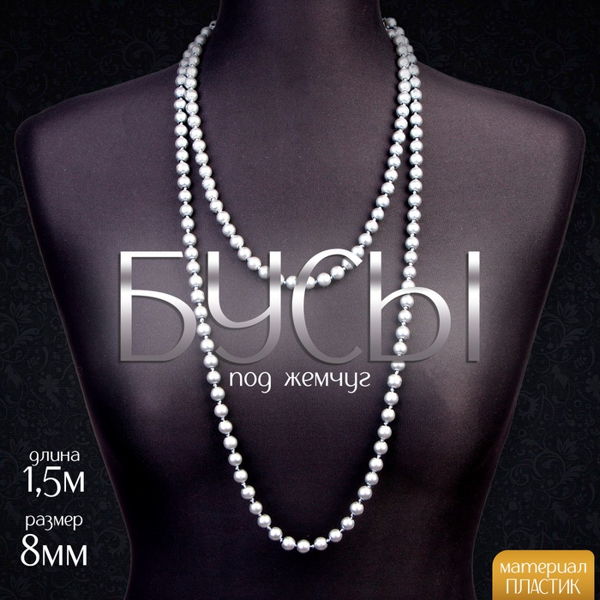Бусы карнавальные «Жемчуг», 1,5 м, 8 мм, серый