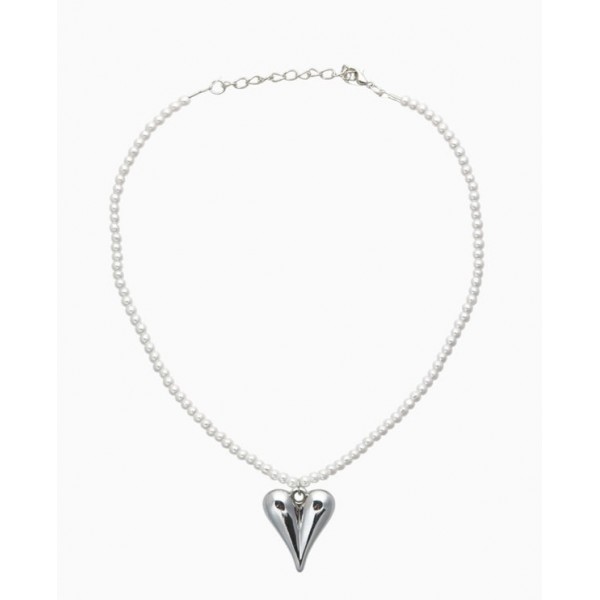 Колье-чокер «Сердце» жемчужные бусины, белый, цвет серебристый, 33 см + 5 см доп, цепочка
