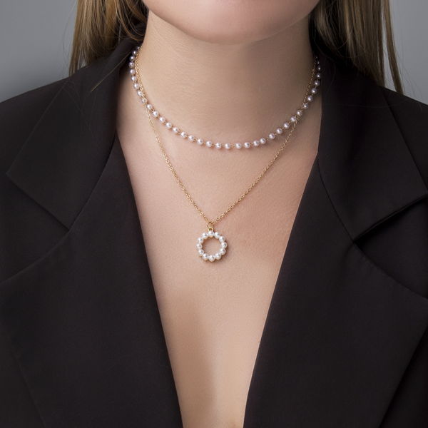 Колье с жемчугом "Олимпия" круг, цвет белый, цвет золотистый, 40 см (пластик)