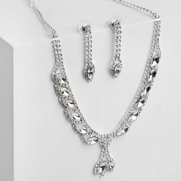 Комплект: серьги, колье "Листопад" ромб, цвет белый, цвет серебристый
