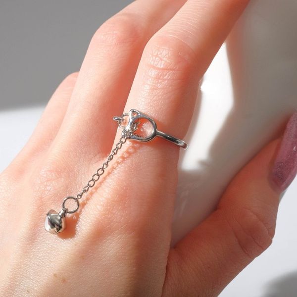 Кольцо "Цепь" кошечка, цвет серебро, безразмерное