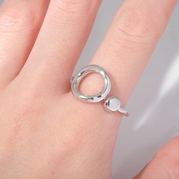 Кольцо "Минимал" круги дуэт, цвет серебро, безразмерное