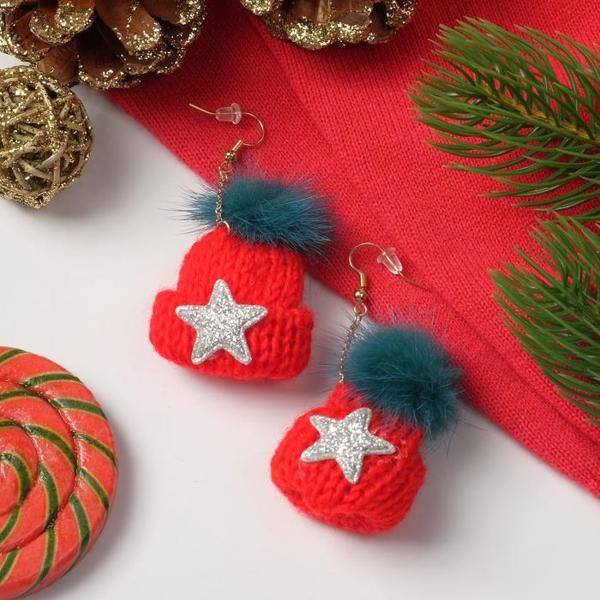 Серьги "Новогодние" мягкие, шапочки, цвет красно-зелёный