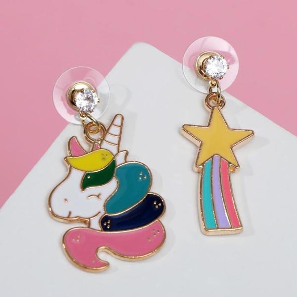 Серьги эмаль "Единорог" и звезда, цветные, цвет золотистый