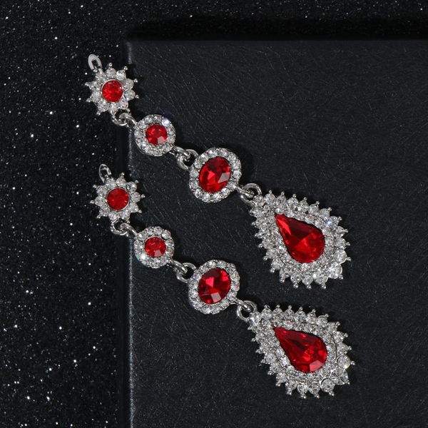 Серьги висячие со стразами "Вечерние" мадам, цвет бело-красный, цвет серебристый