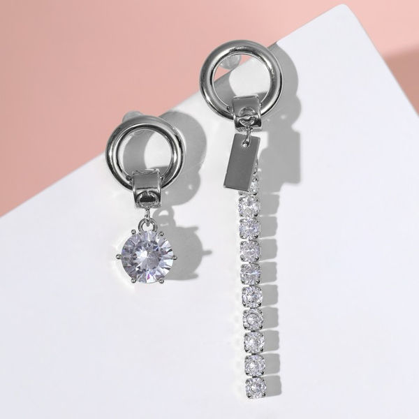 Серьги со стразами "Блум" ассиметрия, цвет белый, цвет серебристый