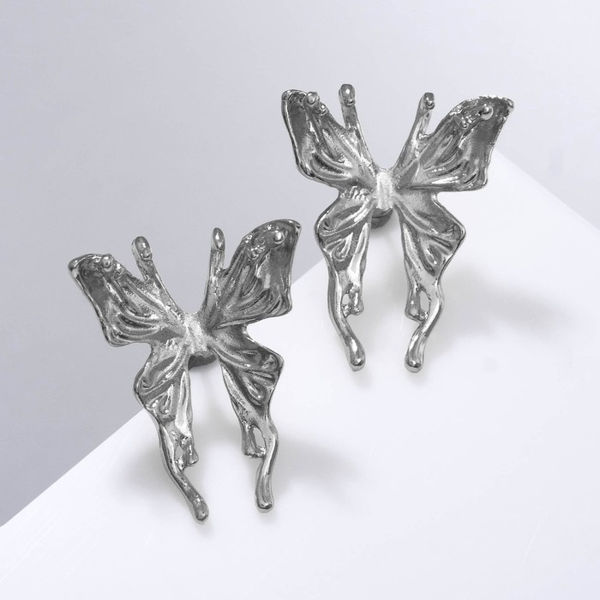 Серьги металл "Бабочки" сказочные, цвет серебро
