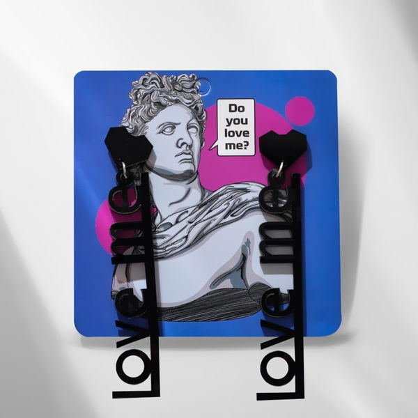 Серьги акрил LOVE ME с сердечком, цвет чёрный, цвет серебристый