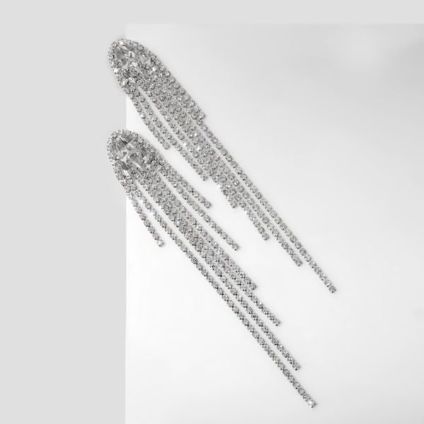 Серьги висячие со стразами "Голливуд" нити на кристаллах, цвет белый, цвет серебристый