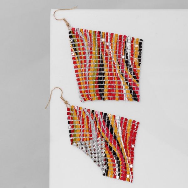 Серьги висячие "Ромб" кольчуга, волны, цветные