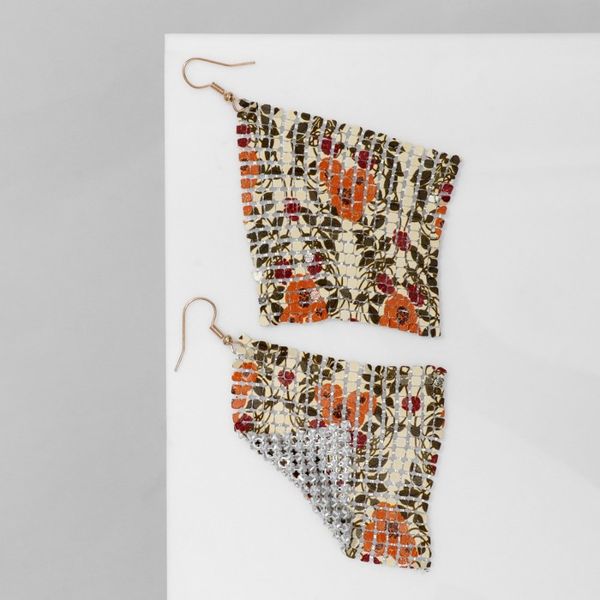 Серьги висячие "Ромб" кольчуга, цветочная поляна, цветные