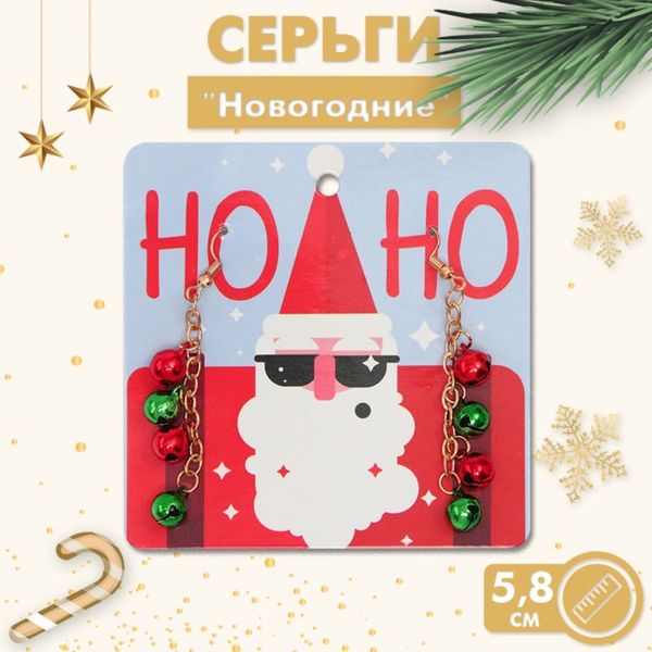Серьги "Новогодние" бубенцы, цвет красно-зелёный, цвет золотистый