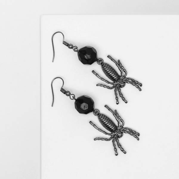 Серьги "Пауки" с бусиной, цвет чёрно-серый, цвет серебристый