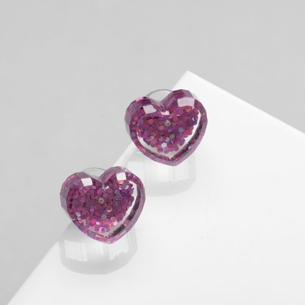 Серьги ассорти "Сердце" вспышка, цвет розовый, цве..
