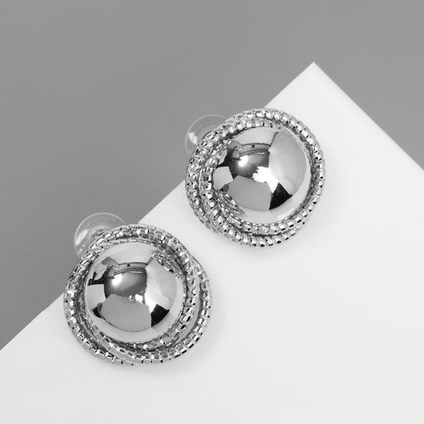 Серьги пластик «Майорика» круг, белые, цвет серебристый