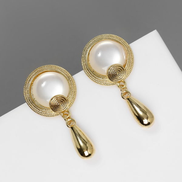 Серьги висячие «Жемчужные капли», белые, цвет сере..