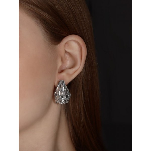 Серьги со стразами QF «Блеск» капля, белые, цвет серебристый