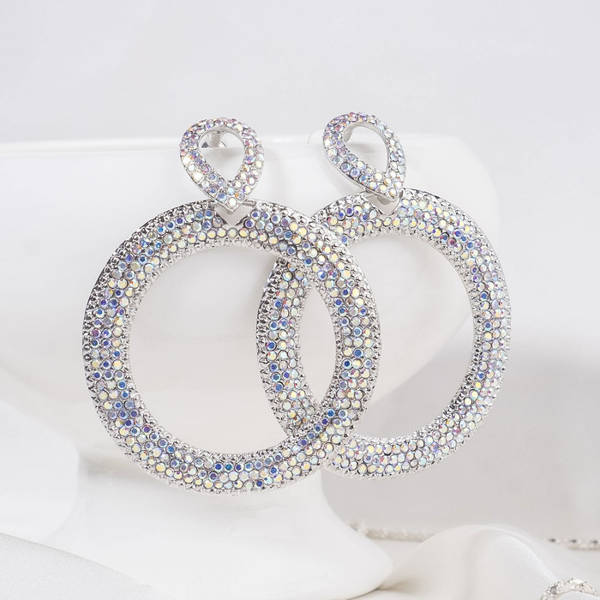 Серьги висячие со стразами "Эдем" кольцо, радужный, цвет серебристый