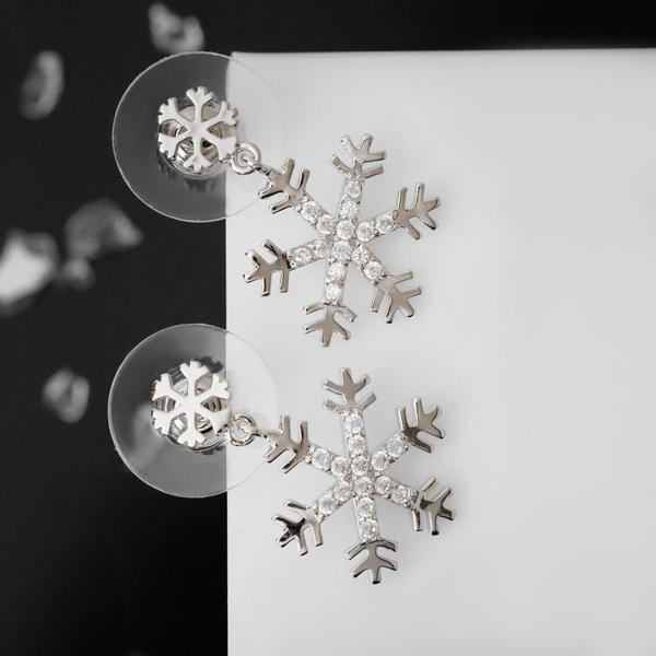Серьги "Новогодние" снежинки со стразами, цвет белый, цвет серебристый