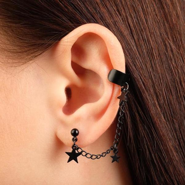 Серьга "Каффа" цепь со звездой, цвет чёрный