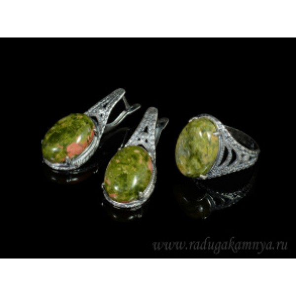 Кольцо и серьги с унакитом