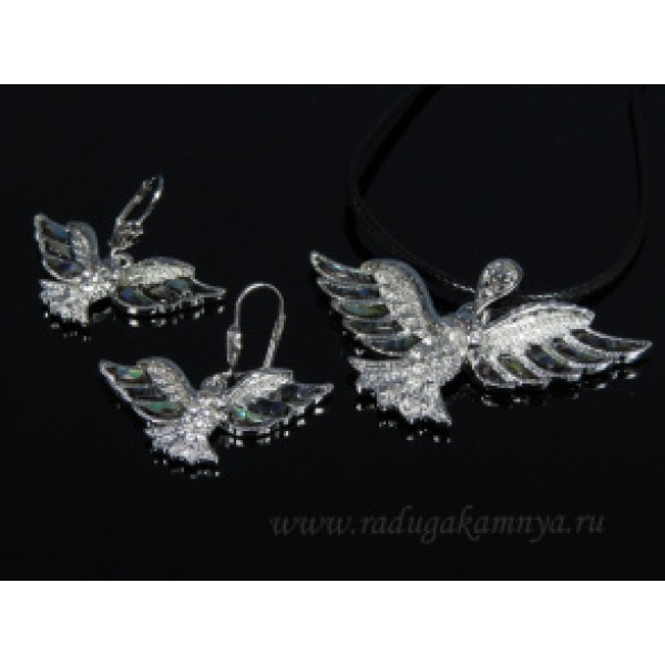 Набор из перламутра гелиотис Кулон, серьги орел 60*30мм, 40*20мм, 48см