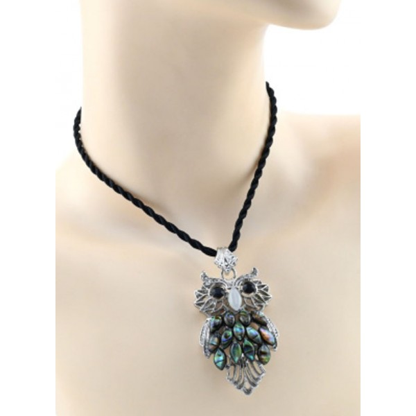 Кулон на шнурке из перламутра Сова 39*42мм, 48см