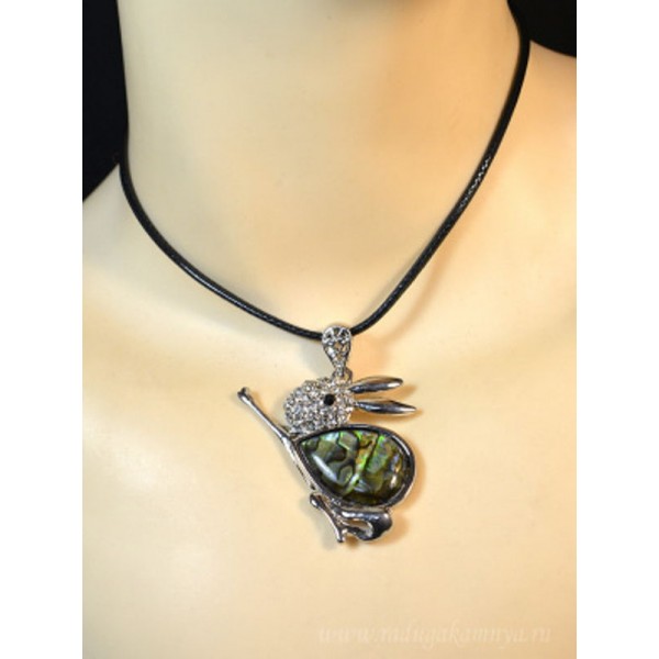 Кулон на шнурке с перламутром гелиотис заяц 41*42мм, 48см