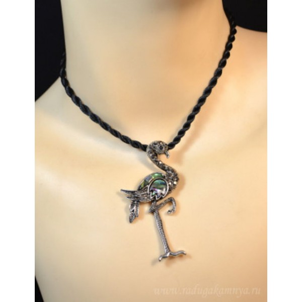 • Кулон на шнурке с перламутром гелиотис цапля 33*64мм, 50см