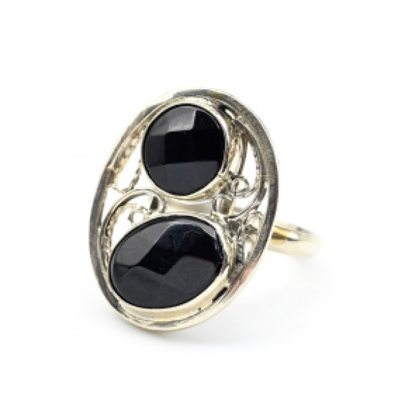 Модное кольцо с агатом черным (имитация), серебристое (иск.)