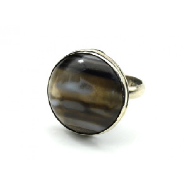Модное кольцо с агатом черным (имитация), серебристое (иск.)
