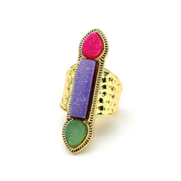 • Кольцо "Великолепный Век"с друзами агата в золотистом металле цвет фиолетовый.