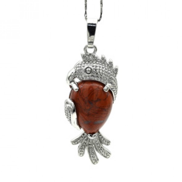 Кулон в металле "Попугай" 15*35мм с яшмой красной