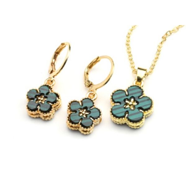 Серьги и Кулон с цепочкой "Ромашки" цвет зеленый, 44см (иск.)