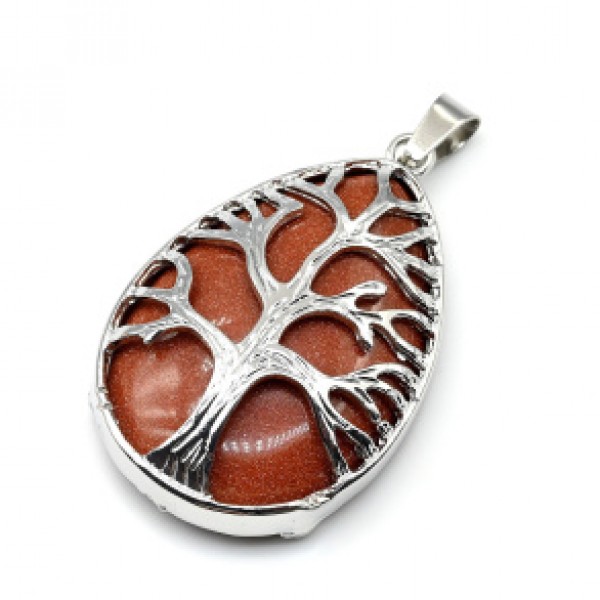 Кулон Дерево на капле 26*39мм с авантюрином (иск.)