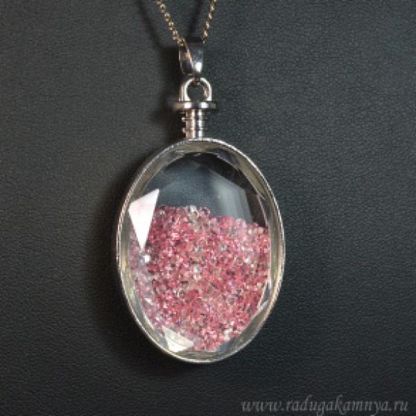 Кулон в металле с подвижными стразами цвет розово-белый, овал 32*42мм (иск.)