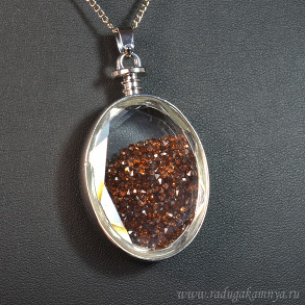 • Кулон в металле с подвижными стразами цвет коньячный, овал 32*42мм (иск.)