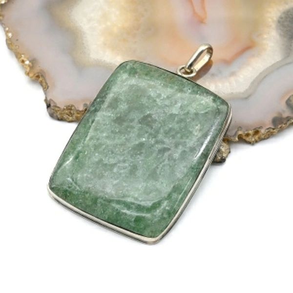 Кулон авантюрин зеленый "Прямоугольник" 35*44мм.