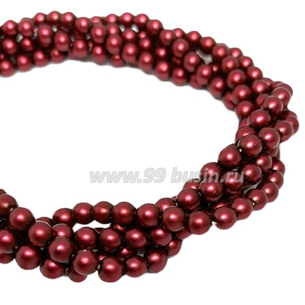 Бусина стеклянная жемчуг (иск.) (иск.) (иск.) на нити 4 мм матовый цвет бордо Чехия 60 штук