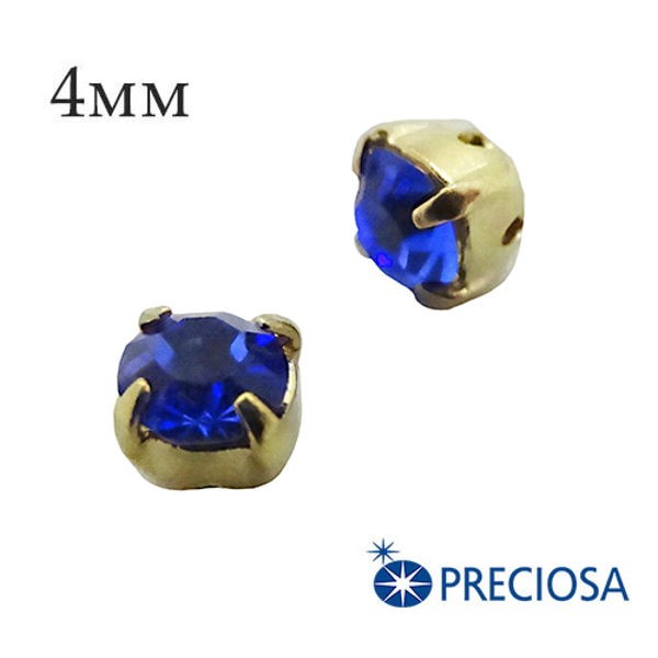 Шатоны в оправе PRECIOSA MAXIMA ss-16 (4 мм), цвет Sapphire/gold, 12 штук/упаковка, Чехия