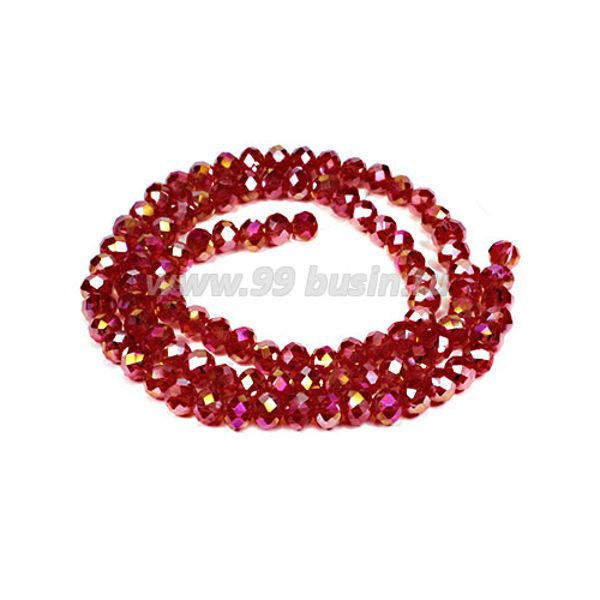 Бусина хрустальная Рондель 3,7*3 мм тёмно-красный/бензин около 35 см/нить