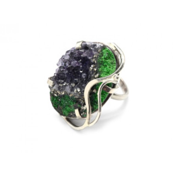 • Кольцо с аметистом, уваровитом и пиритом 22*30мм