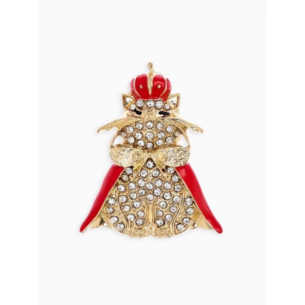 • Брошь «Кошка Царица», красно-белая, цвет золотистый