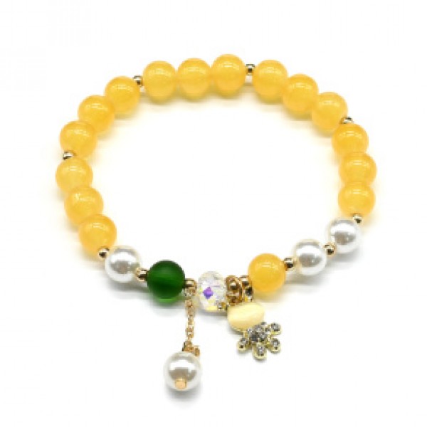 • Браслет с подвеской Зайка шарик 8мм цвет желтый (иск.)