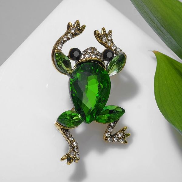 Брошь "Лягушка" драгоценная, цвет бело-зелёный, цвет золотистый