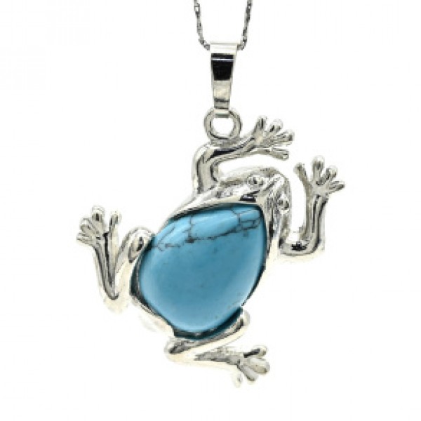 Кулон Лягушка 30*30мм с бирюзой искусственной (иск.)